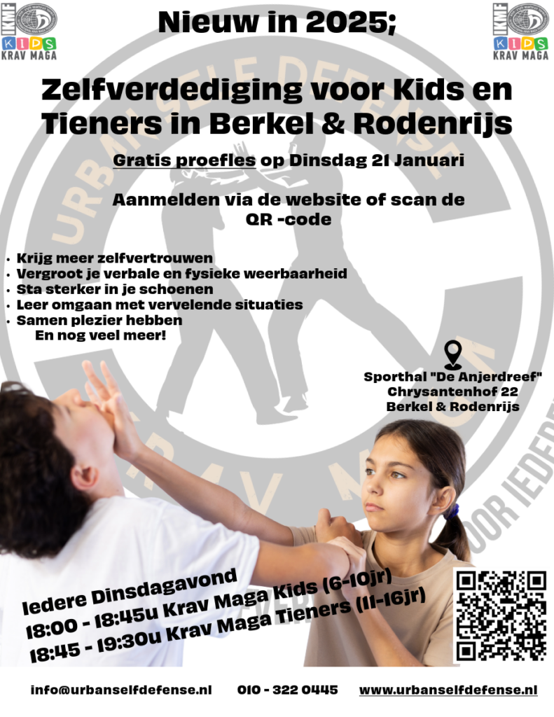 Vanaf 2025 breiden we onze lessen uit en gaan we ook lessen zelfverdediging voor Kids en Tieners aanbieden in Berkel & Rodenrijs! En om het nieuwe jaar goed af te trappen organiseren we op dinsdag 21 Januari een gratis proefles voor alle kids en junioren die kennis willen maken met Krav Maga!